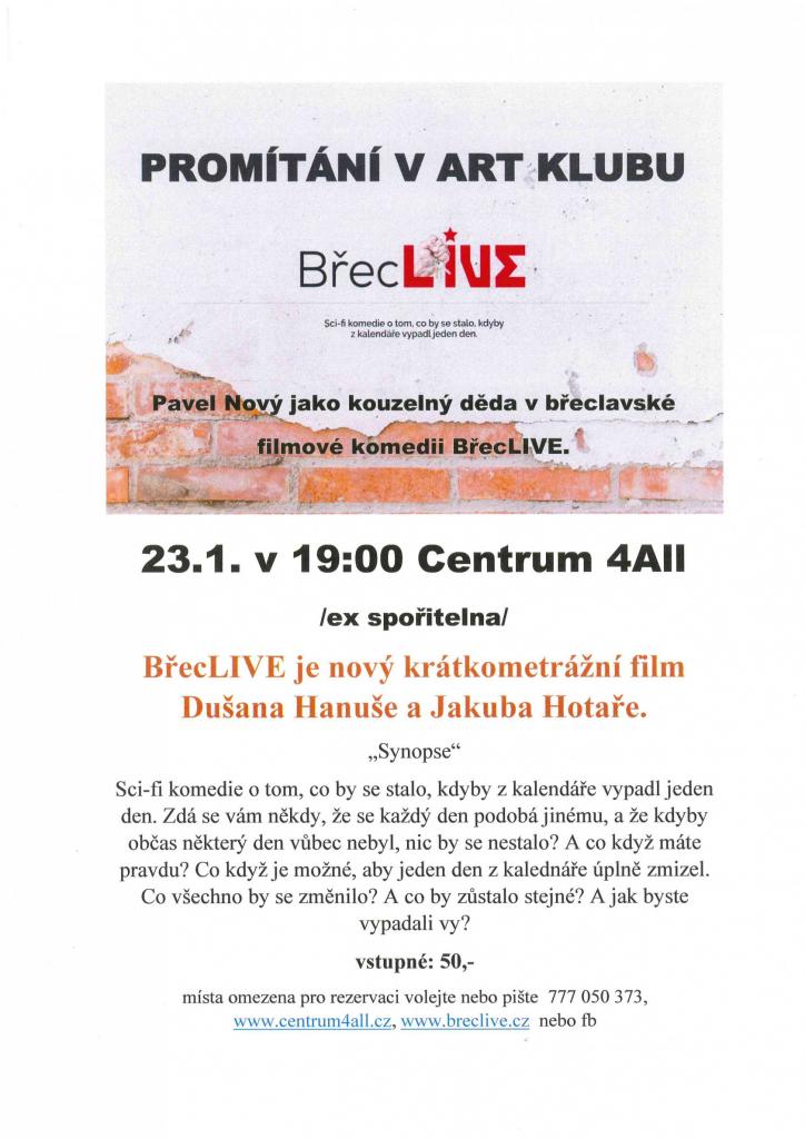 více informací na: http://www.centrum4all.cz, http://www.breclive.cz, facebook Centrum4All, tel.: + 420 777 050 373